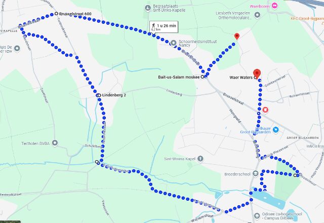 Buitenparcours in Dilbeek. Start en finish zijn aan de ingang van Waer Waters resort.